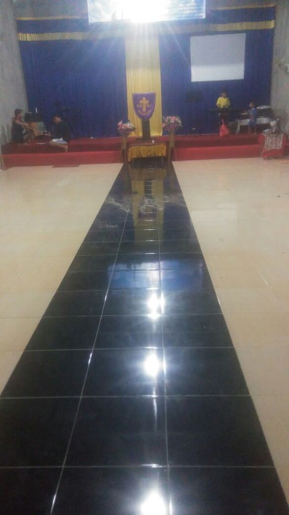 Hasil akhir Pemasangan ubin untuk lantai Gereja Kristen Maranatha Indonesia