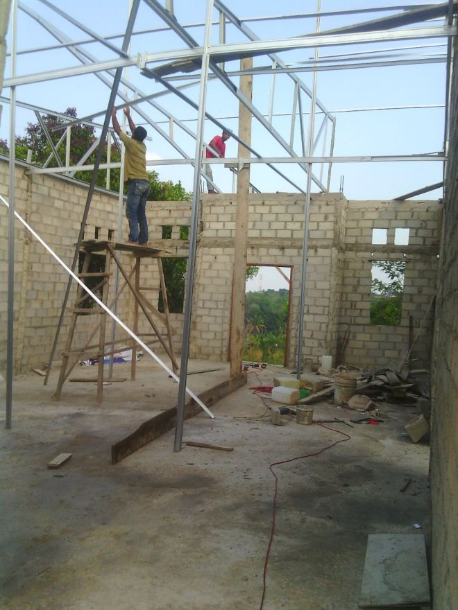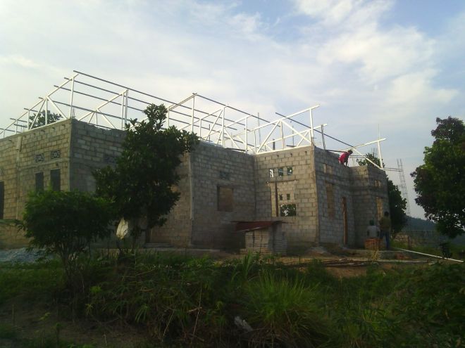 Pemasangan Kerangka Atap GDPI Bukit Zaitun Desa Pangke