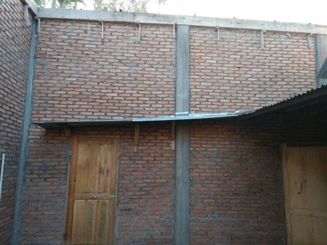 Pembuatan Tembok gereja yang sebagian sudah jadi
