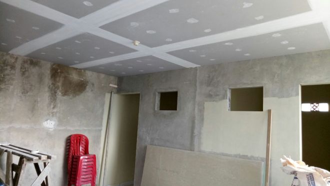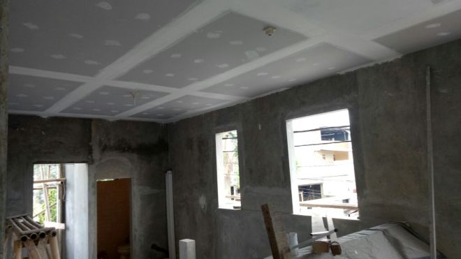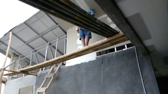 Pemasangan Atap, Platfon atap bangunan, dan juga finishing bagian tembok bangunan gereja.