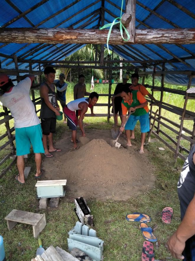 Sebagian jemaat GBI Meranggau ikut berpartisipasi dalam membangun gereja.