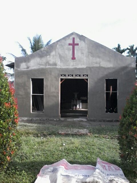 Tampak Bagian depan bangunan gereja yang dalam penyelesaian