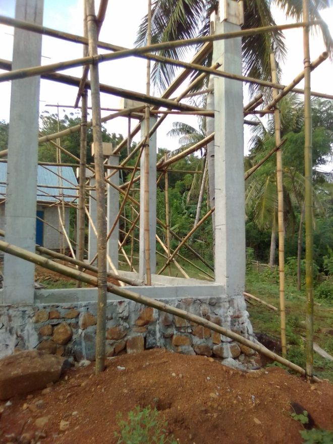Pembuatan pondasi banguna yang sudah hampir selesai.