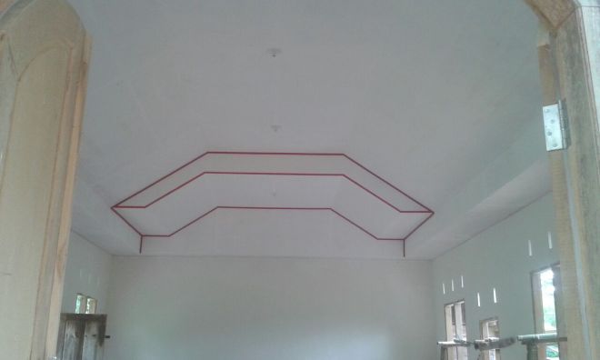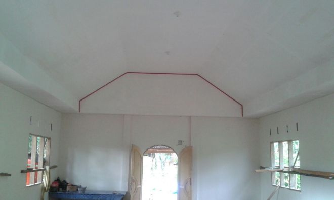Bagian atas samping bangunan gereja dalam proses pengerjaan.