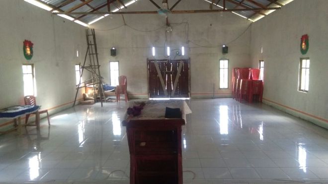 Hasil akhir dari pemasangan keramik dan Platfon atap bangunan gereja