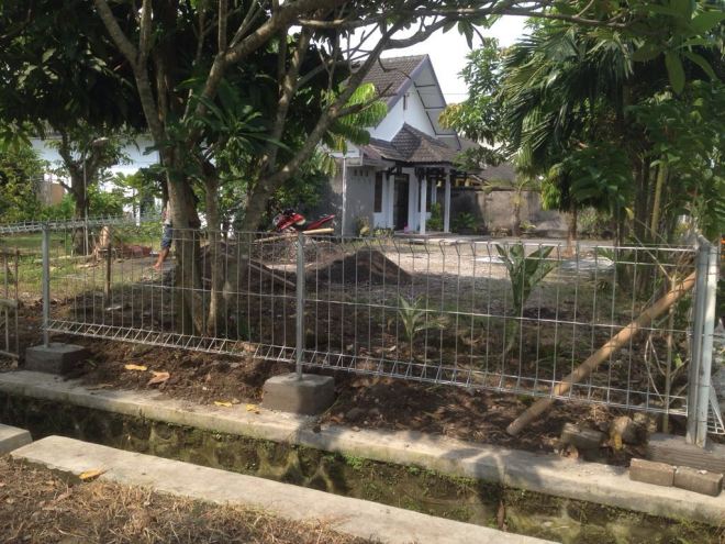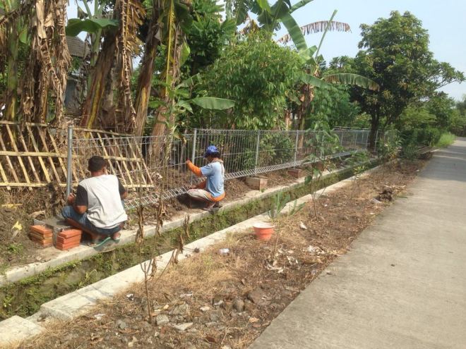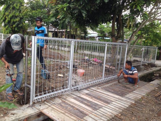 Pemasangan pagar pada halaman bangunan gereja dalam proses