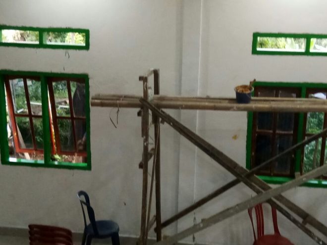 Pengecatan Bagian tembok bagian dalam bangunan gereja dlm tahap finishing