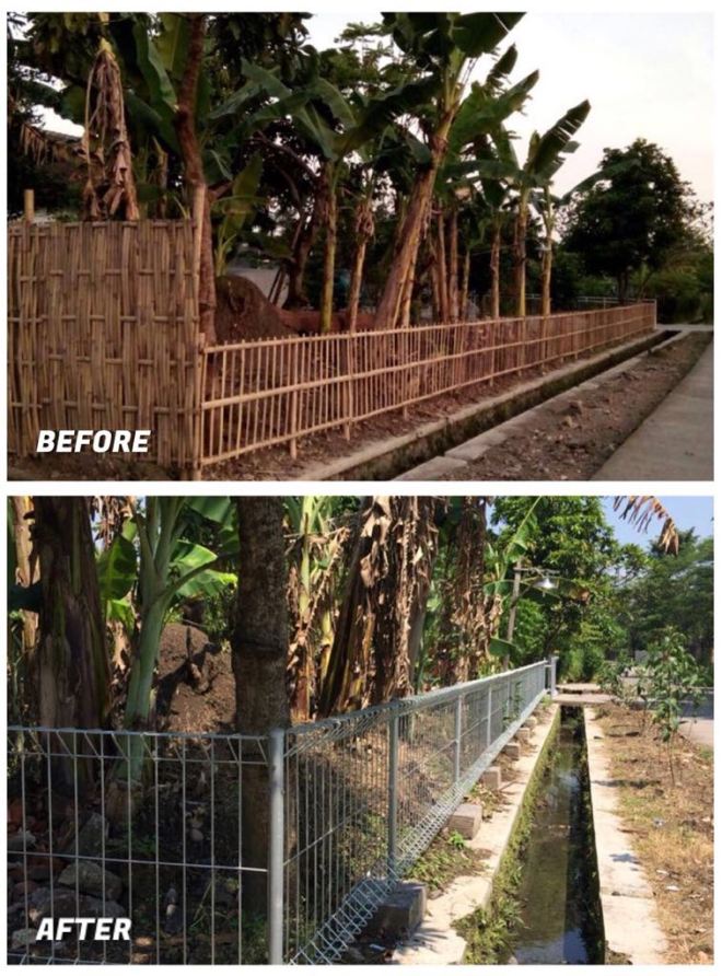 Hasil penyelesaian pemasangan pagar pada sekeliling halaman bangunan gereja.