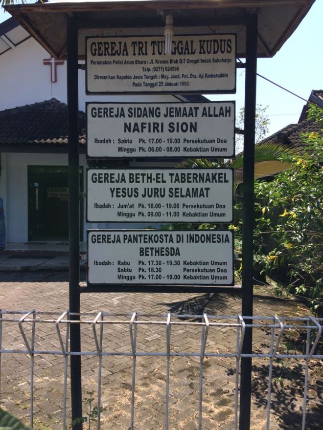Plang Nama Gereja dimana 3 (Tiga) gereja menjadi satu kesatuan.