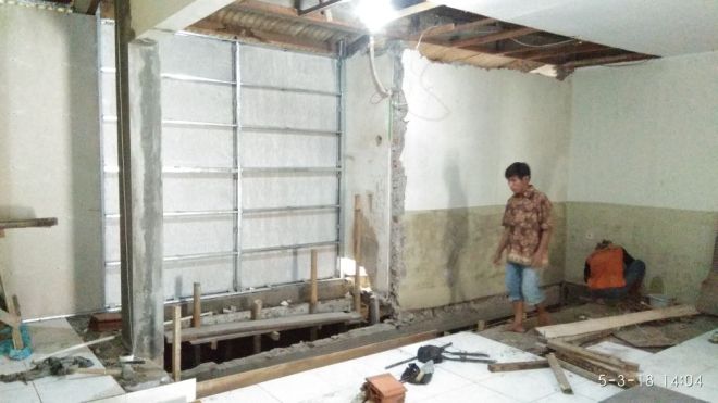 Tampak bagian tembok dan lantai bangunan gereja masih dalam tahap pengerjaan.