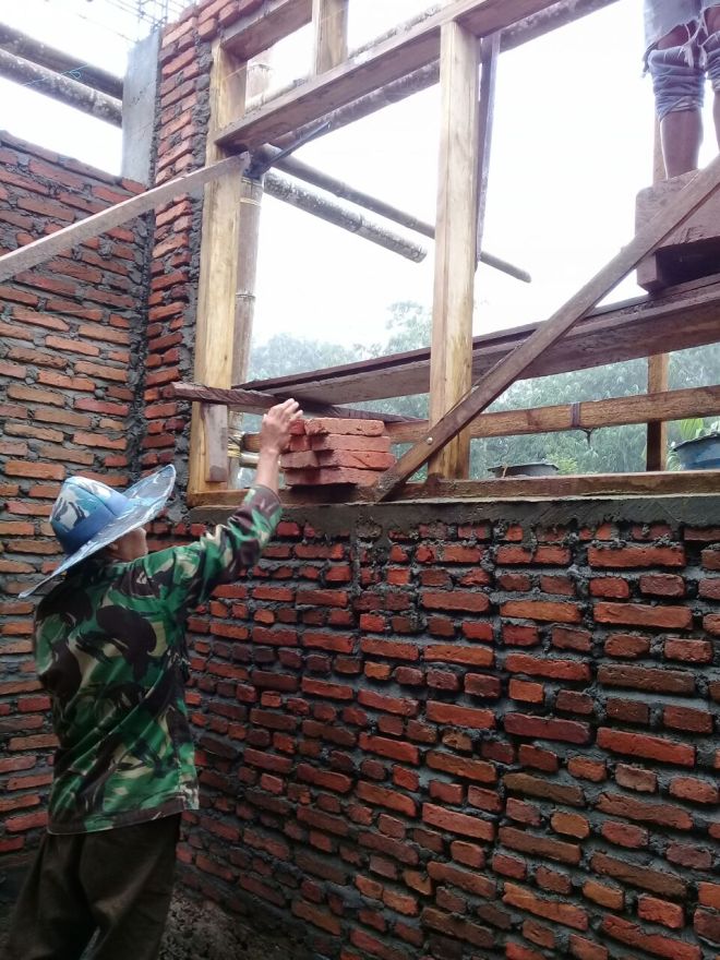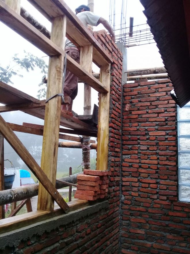 Pemasangan batubata pada bagian samping kanan dan kiri bangunan gereja.