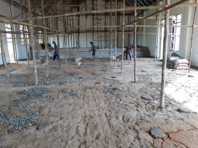 Pengurukan pada bagian lantai bangunan sedang dalam proses pengerjaan.