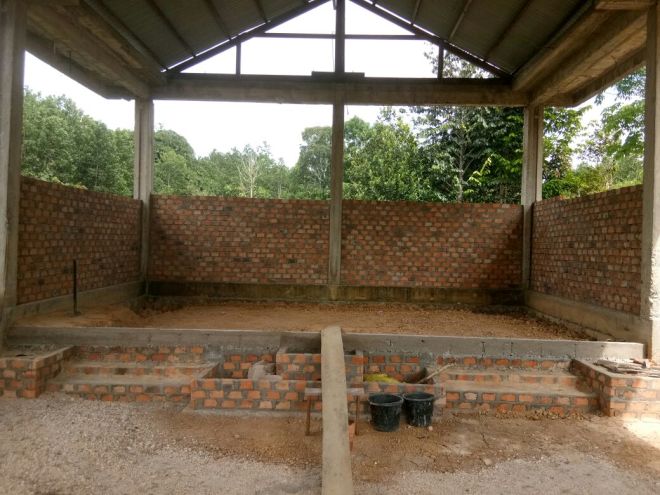 Pemasangan batubata pada dinding bangunan gereja masih dalam proses pengerjaan.