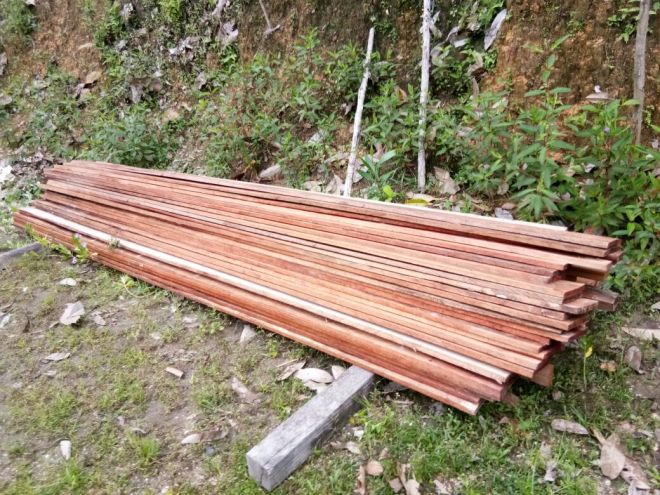 pembelian papan 1 kubik yang sudah diantar. untuk pembuatan kusen pintu dan jendela.