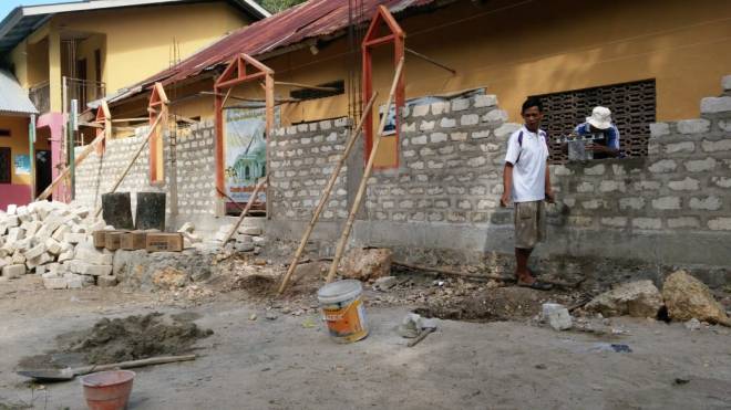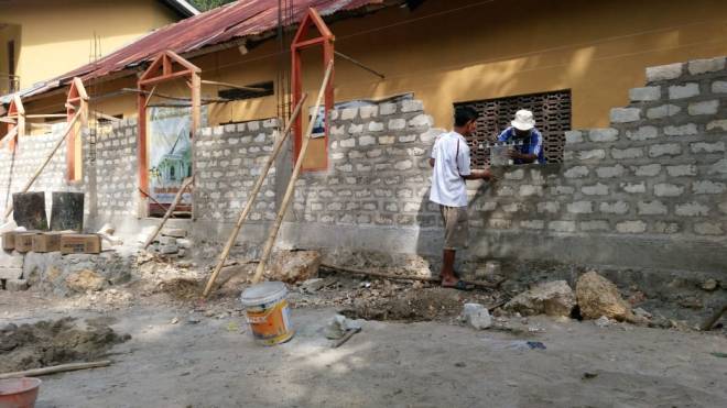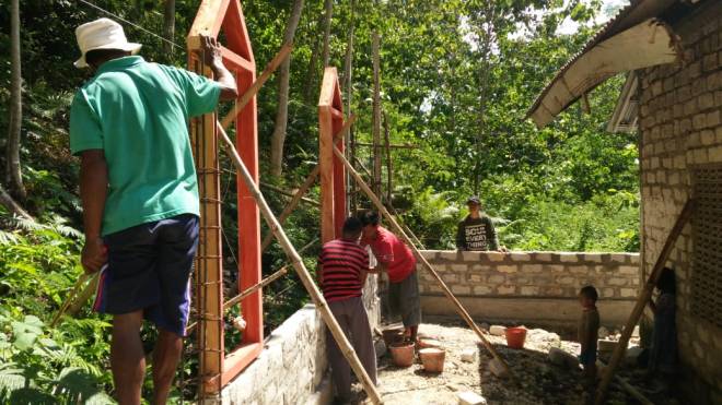 Pemasangan Batubata pada bangunan gereja masih dalam proses pengerjaan