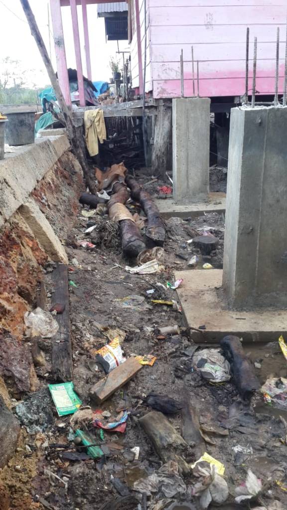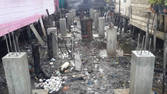 Tongkat sebanyak 35 buah sudah selesai dipasang. Tahap selanjutnya slop sekaligus pengecoran lantai.
