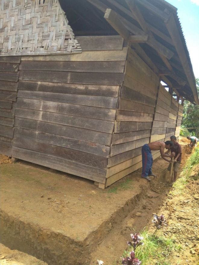 Preoses penggalian disekitar bangunan gereja, untuk pemasangan tiang besi.