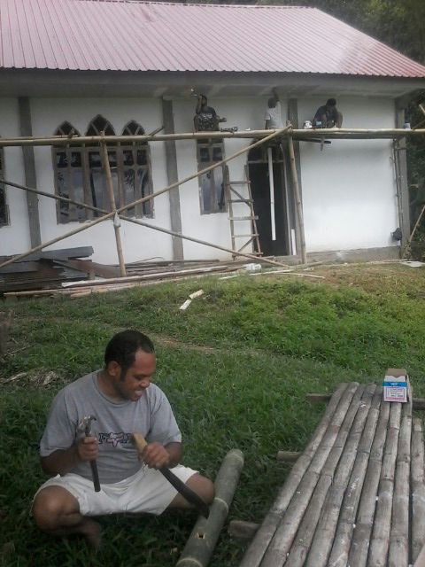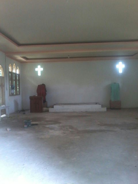 Tampak Bagian depan , Plafon atap bagian luar bangunan gereja sedang dalam proses pengerjaan.