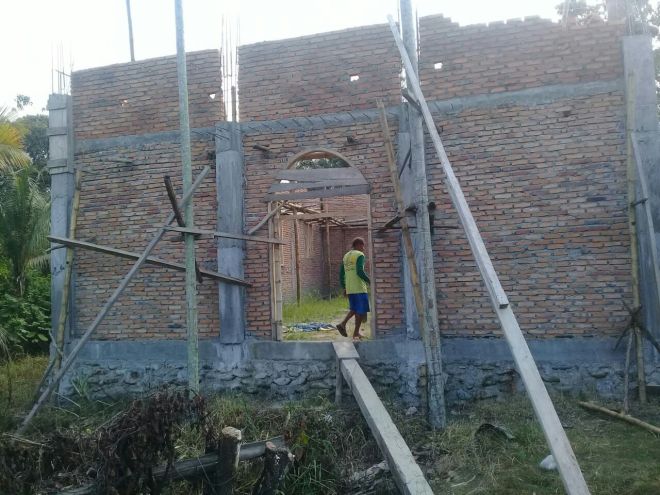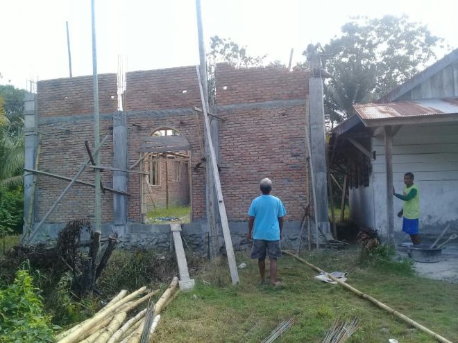 Pemasangan tembok pada bangunan gereja masih dalam pengerjaan