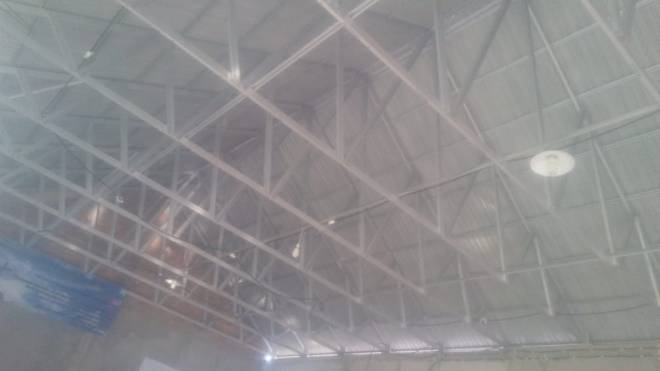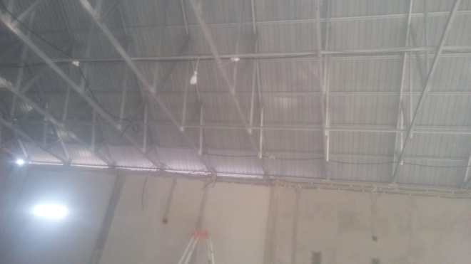 Persiapan Pemasangan plafon, setelah pemasangan kerangka besi pada atap bangunan gereja.
