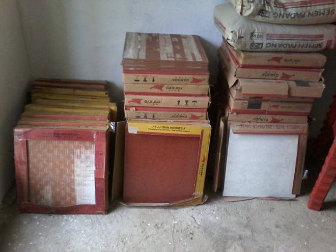 Selanjutnya, tahap pemasang kemarik pada lantai bangunan gereja, bahan bangunan yang digunakan sudah tersedia