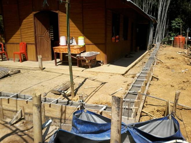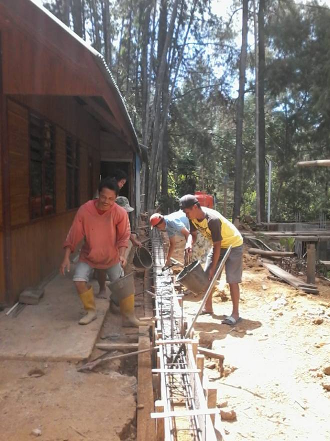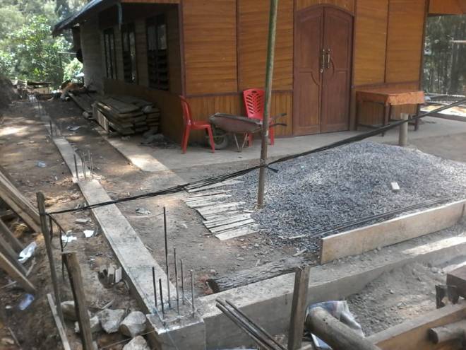 Pemasangan pondasi kerangka besi pada bangungan gereja dalam penyelesaian