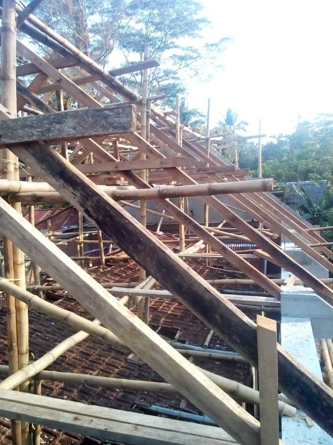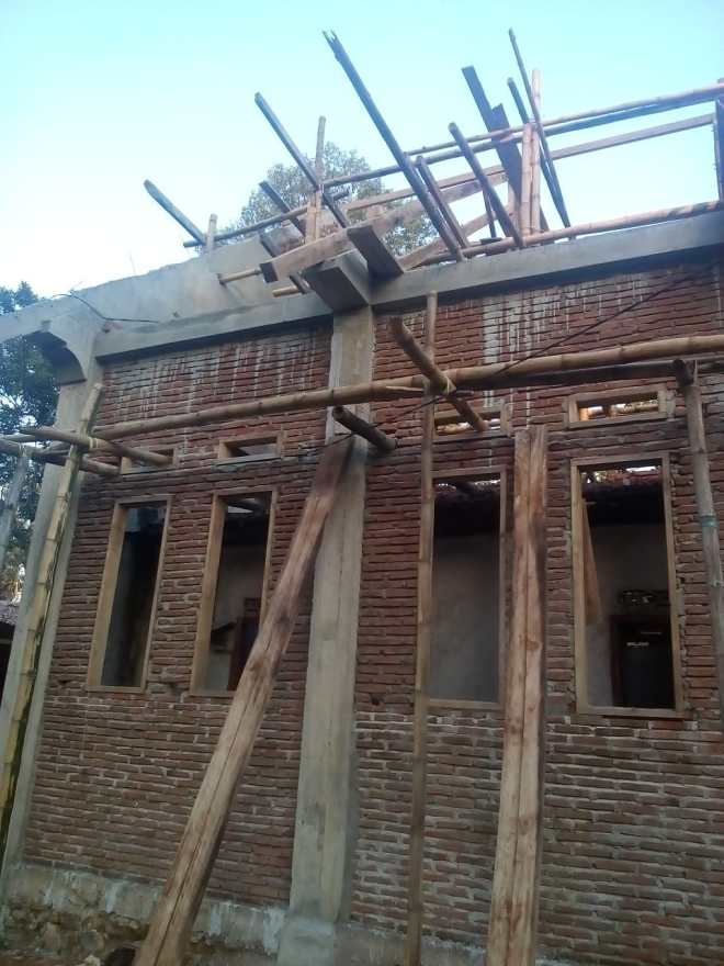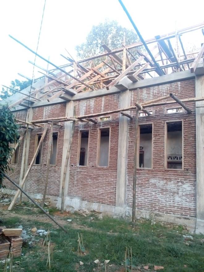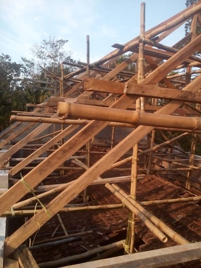 Pemasangan Kerangka atap pada banguna gereja sudah selesai.