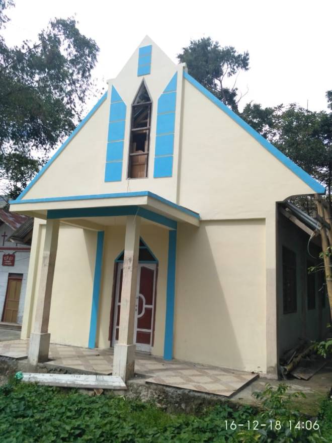 Tampak Bagian depan bangunan gereja sudah selesai dicat