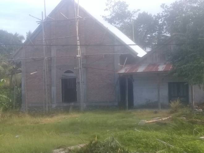 Pemasangan Atap pada bagian atas bangunan gereja sudah selesai.