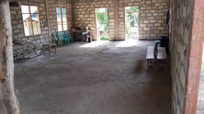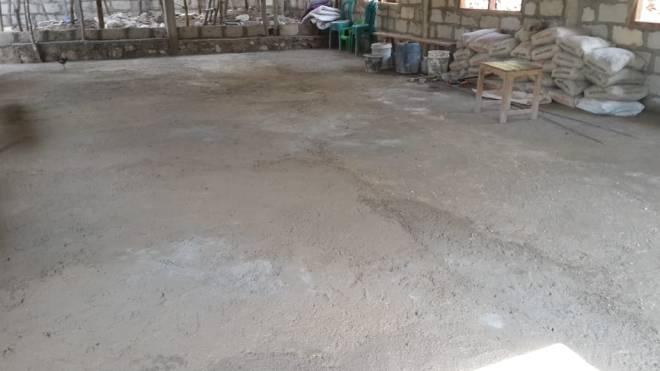 Plester bagian dalam ruangan pada lantai sudah selesai.