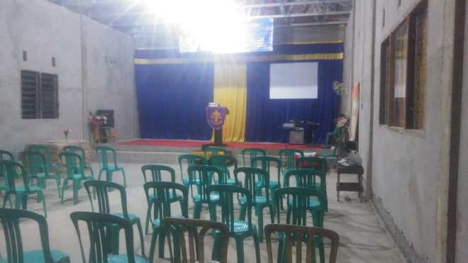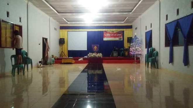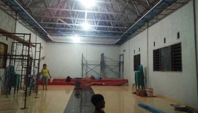 Tampak Bagian dalam Ruangan gereja, sudah selesai pemasangan keramik pada lantai.