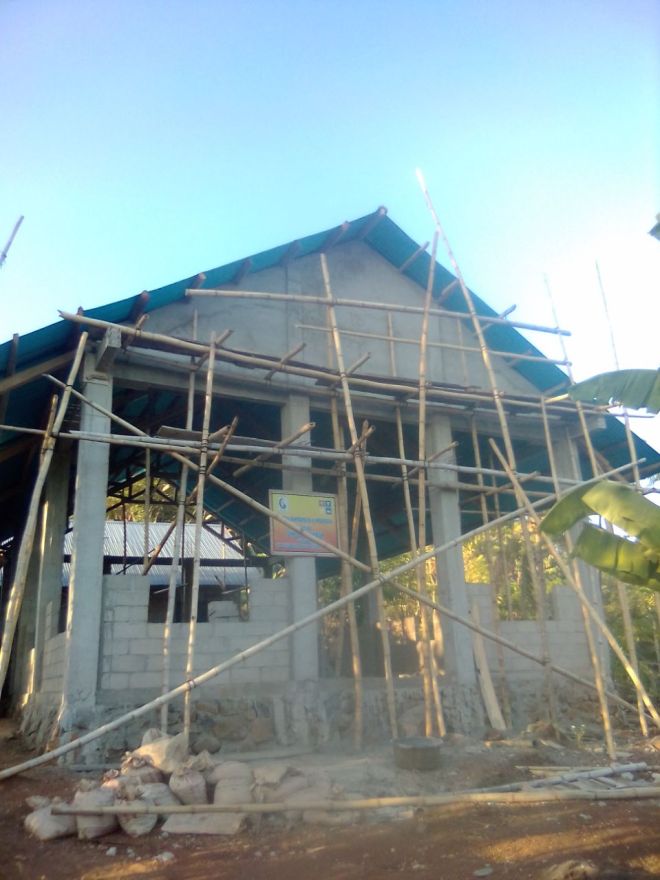 Pemasangan Batako pada tembok bangunan masih dalam proses pengerjaan. Tampak Bagian depan.