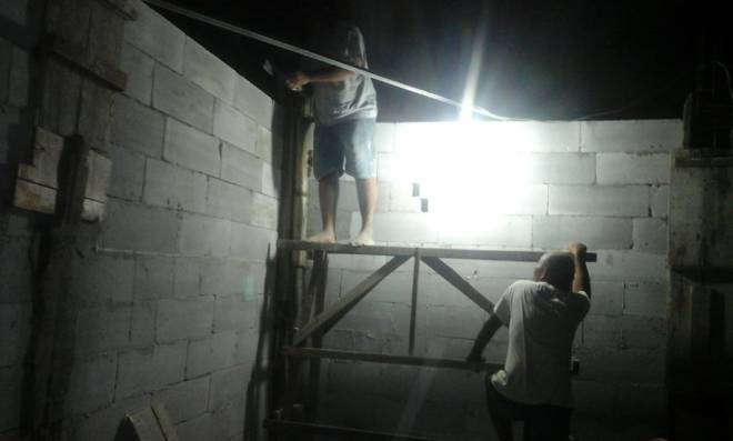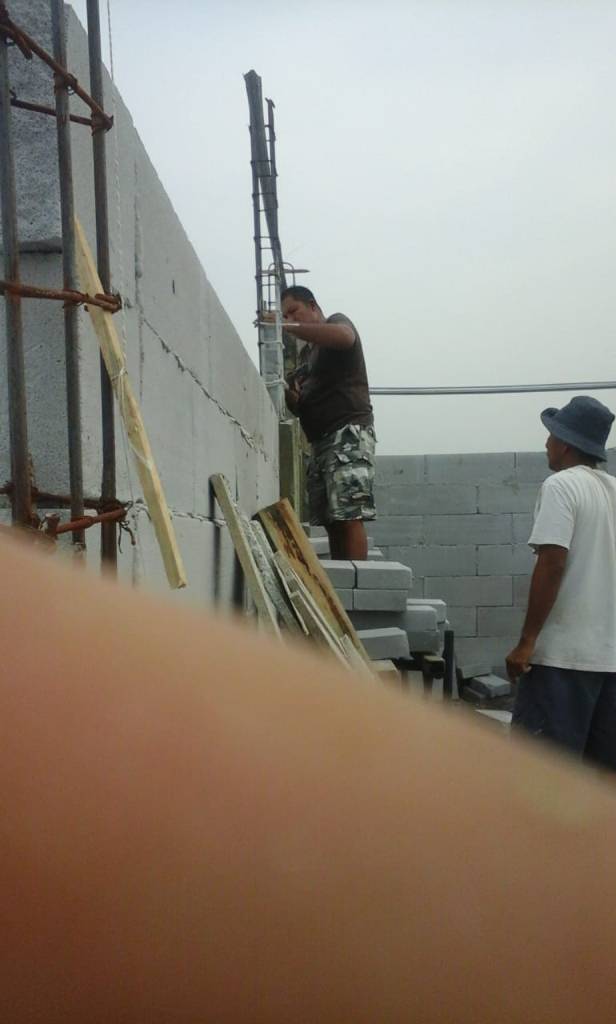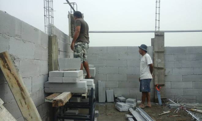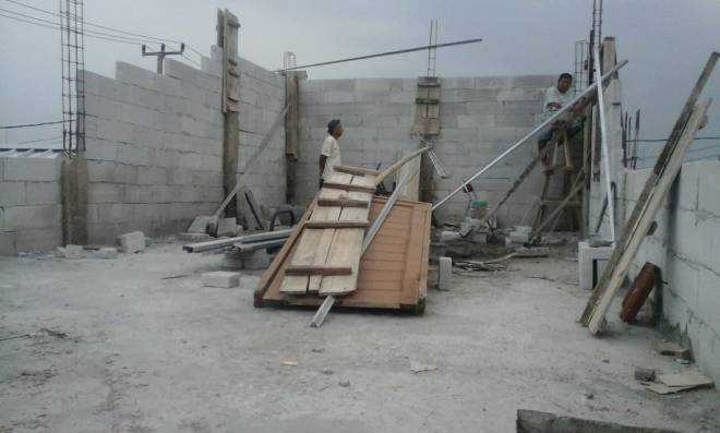 Pemasangan Batako pada bangunan gereja masih dalam proses pengerjaan.