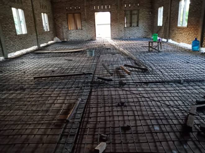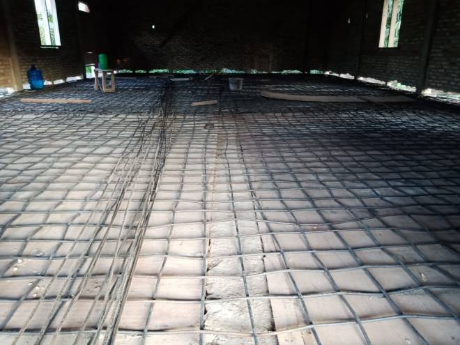 Pemasangan besi pada bagian lantai, sebelum tahap pengecoran sudah selesai.