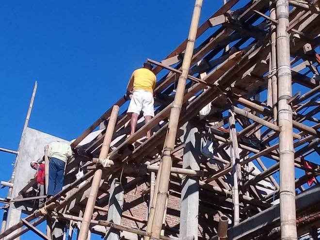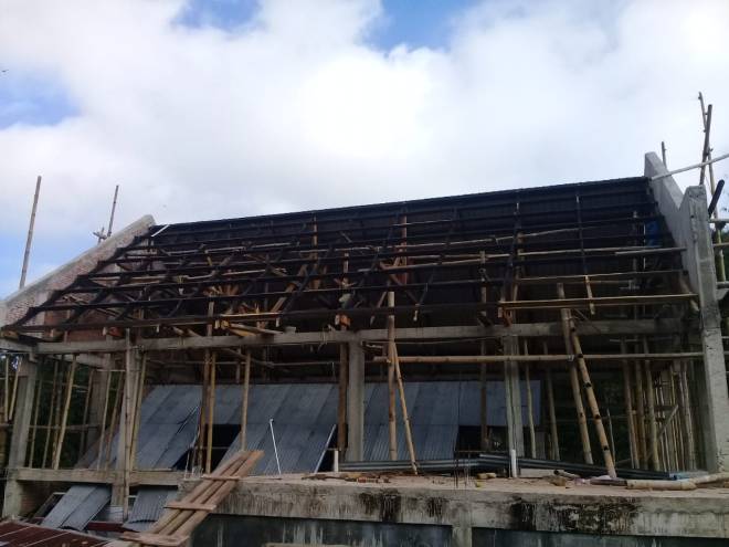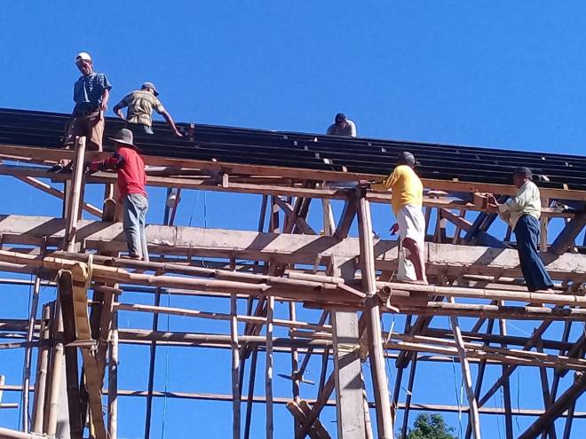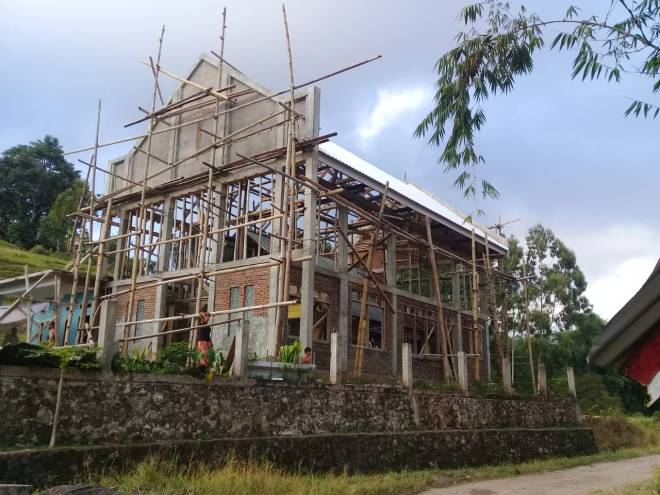 Pemasangan Kerangka pada atap bangunan gereja dalam proses Pengerjaan