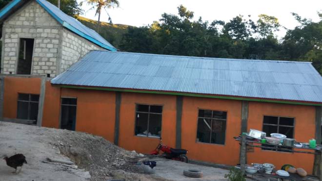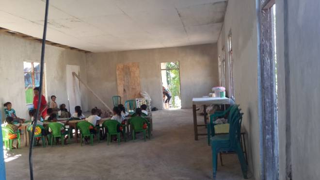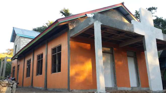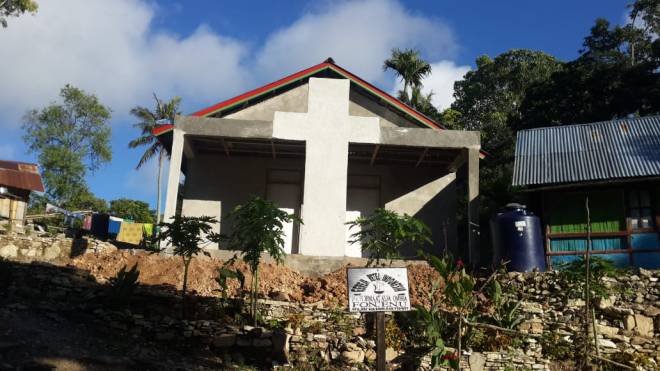 Tampak Bagian depan bangunan gereja, plesteran sudah selesai.