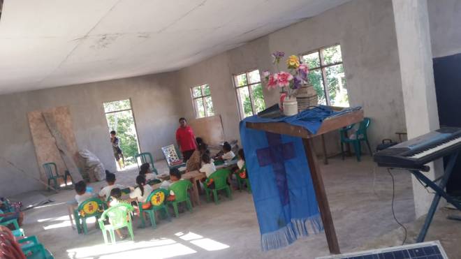 Tampak bagian dalam ruangan gereja, yang sudah selesai diplester.