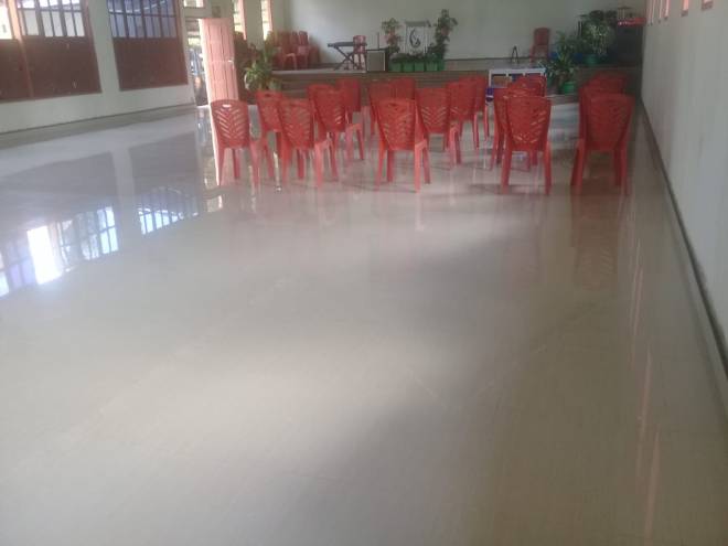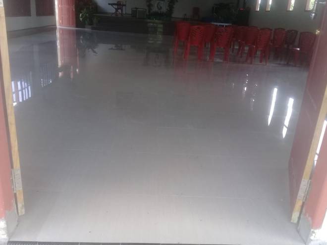 Tampak bagian dalam ruangan bangunan gereja, sudah selesai di keramik.