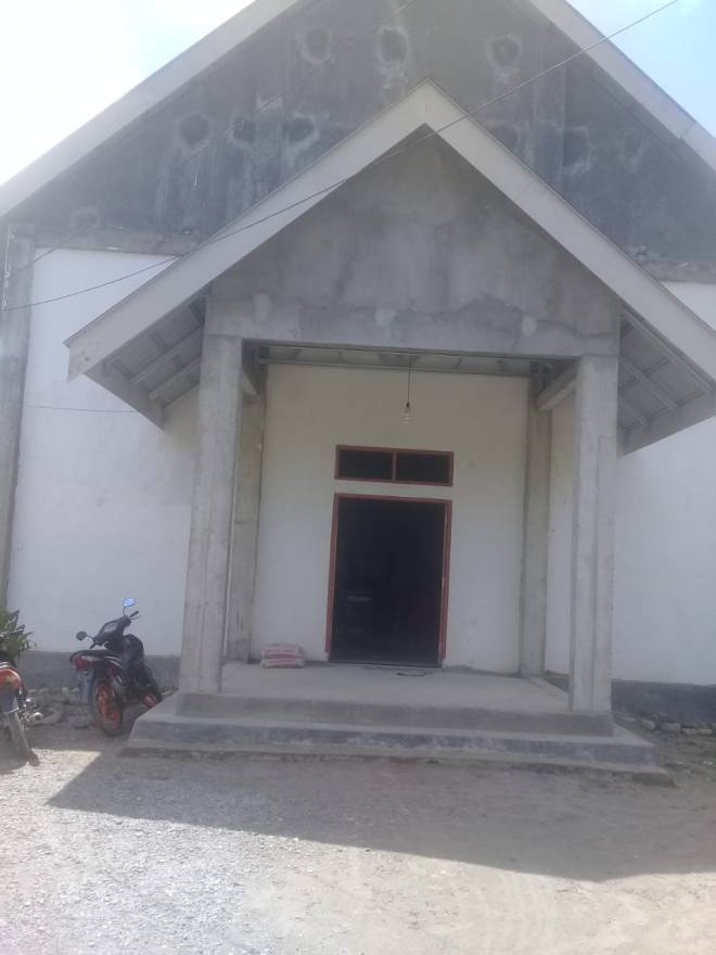 Tampak Bagian depan bangunan gereja, sudah selesai di plester.