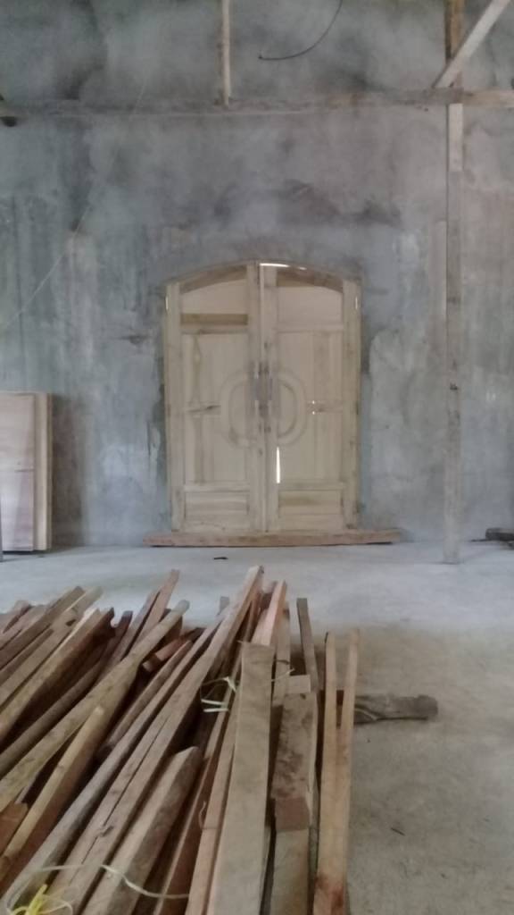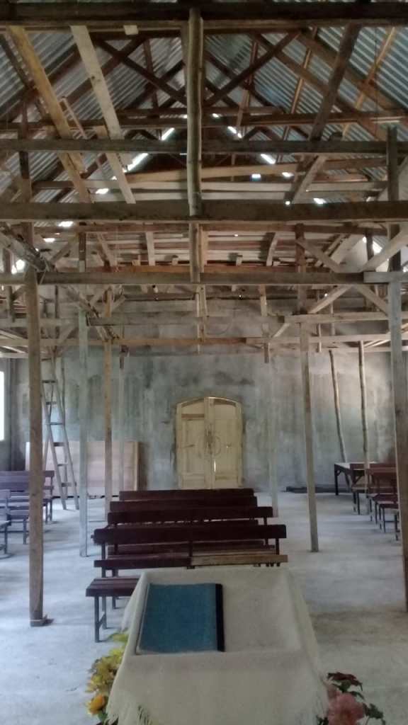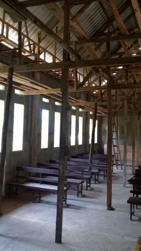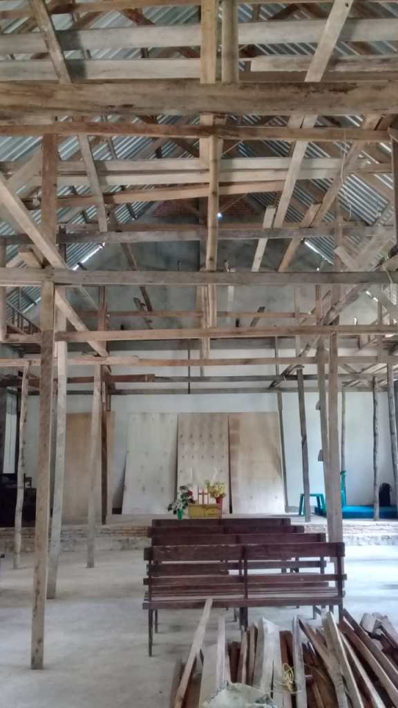 Pemasangan kerangka utk plafon gereja sedang dalam proses pengerjaan.