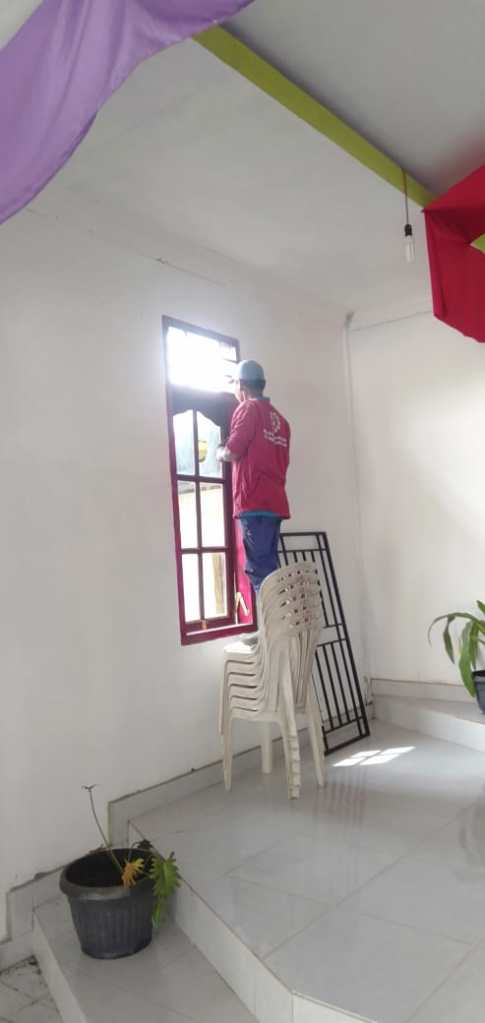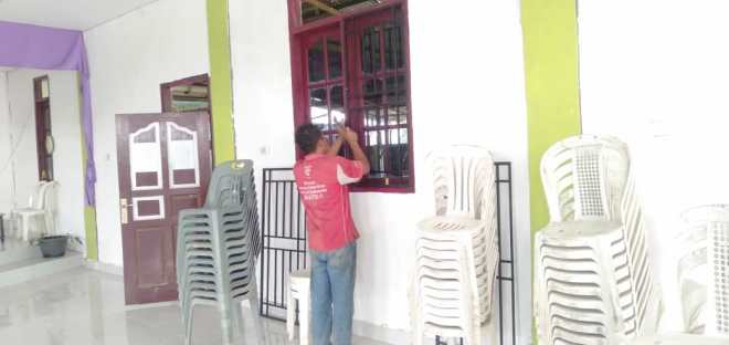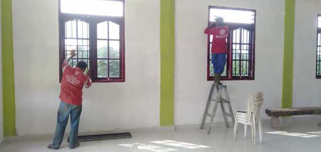 Pemasangan teralis jendela pada bangunan gereja sudah selesai.