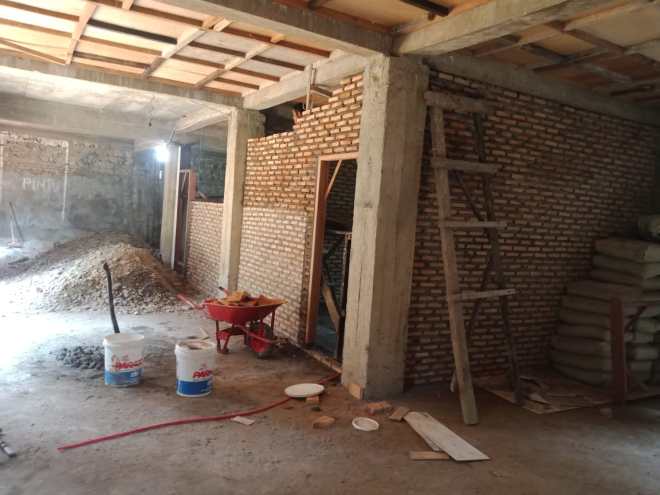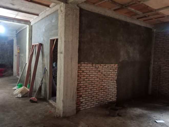 Tampak bagian ruangan sekolah minggu masih dalam pengerjaan plester.