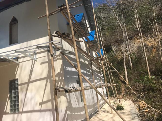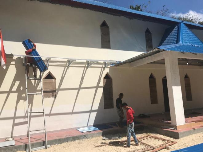 Pemasangan Atap seng pada tiap jendela sedang dalam pengerjaan.