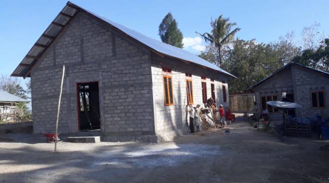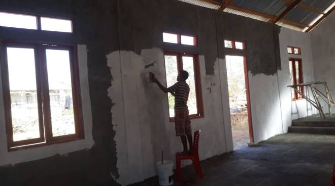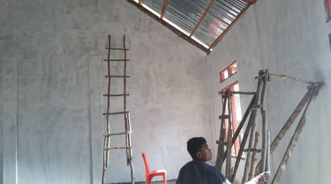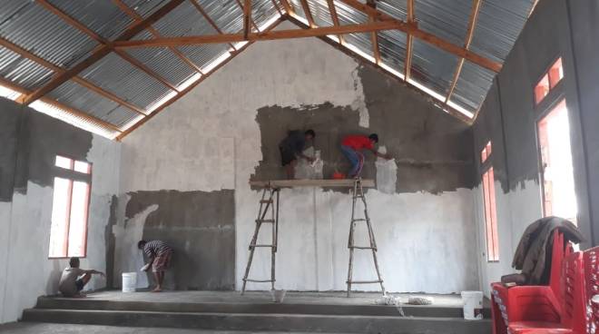 Tampak Bagian depan bangunan gereja yang sdh selesai dalam pengerjaan pemasangan atap.