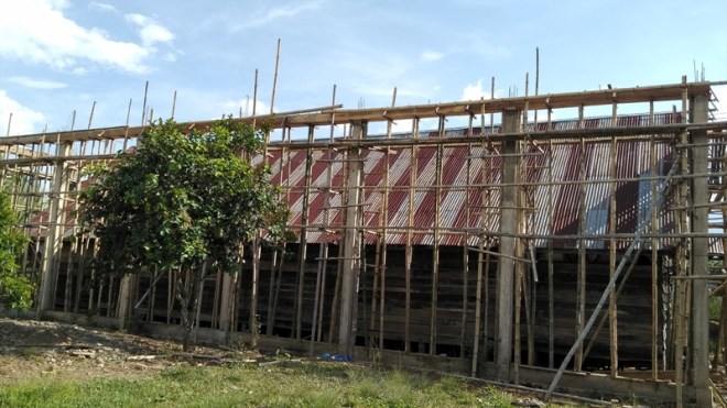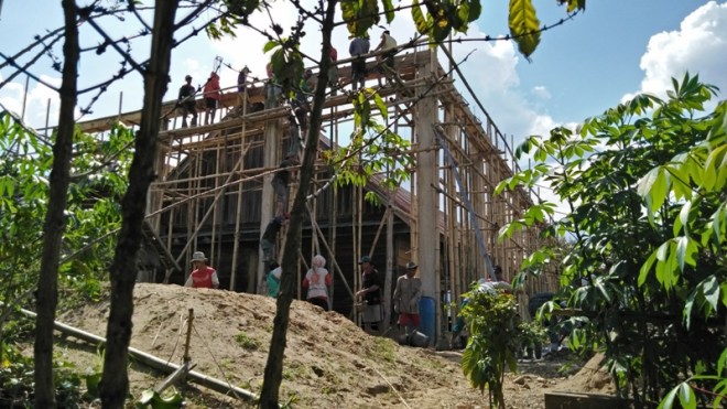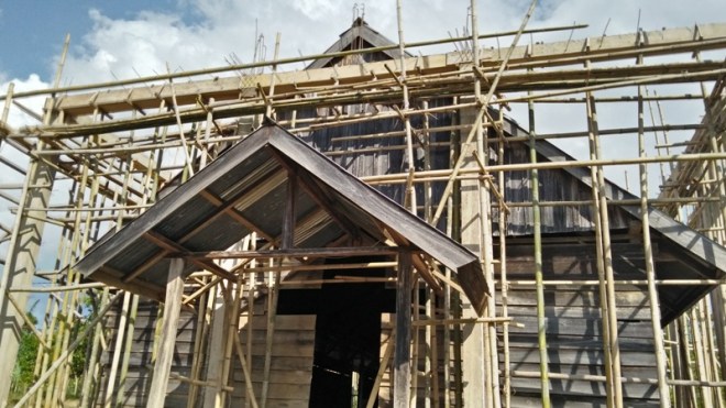 Pengecoran untuk tiang – tiang besi gereja masih dalam proses pengerjaan.