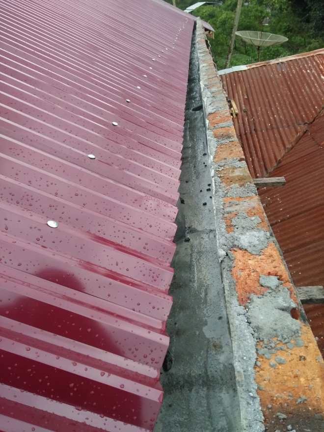 Pemasangan Atap Seng pada bagian atas gereja sudah selesai.