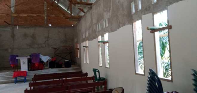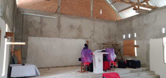 Tampak Bagian dalam ruangan gereja, dalam proses pengecatan.