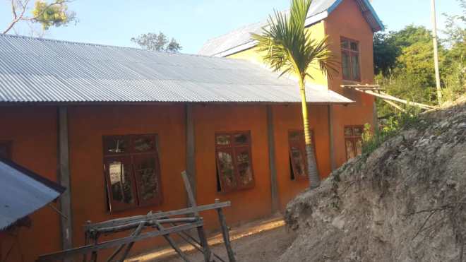 Pembangunan GBI Alfa Omega Ofu sudah selesai, Tampak bagian depan bangunan gereja.