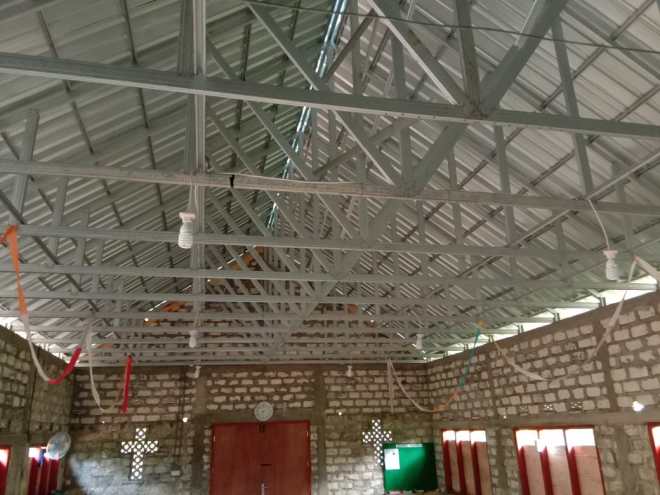 Pemasangan Kusen Pintu dan Kusen Jendela pada bangunan gereja sudah selesai.
