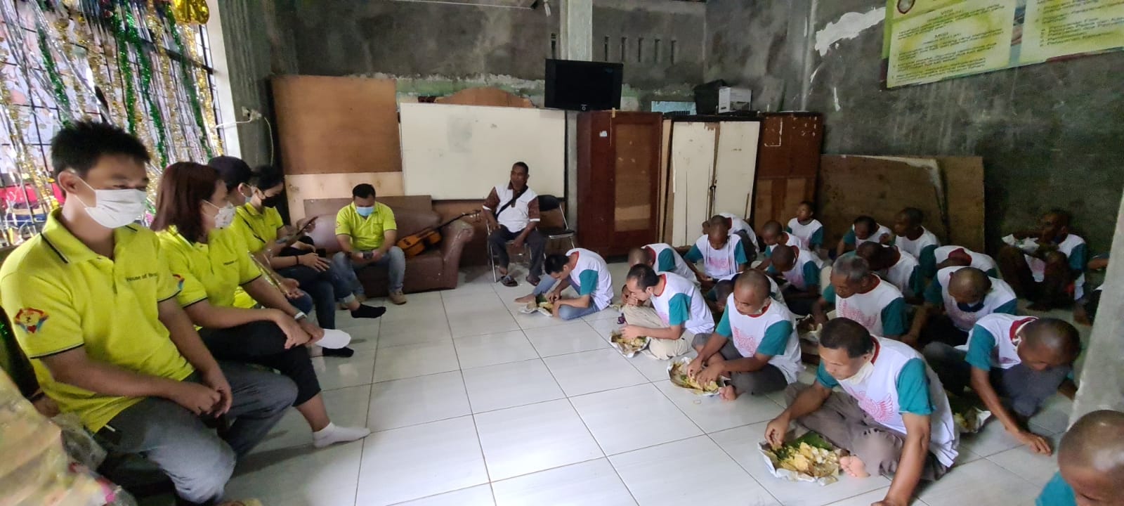 Kesempatan adalah hal kami sangat syukuri. Terutama kesempatan untuk berbagi dengan saudara kami yang membutuhkan. Terlihat mungkin apa yang kami berikan tidaklah istimewa dimata orang lain. Namun, apakah kalian tahu bahwa kesederhanaan yang kami berikan ditambah dengan ketulusan itu sangat berharga bagi mereka. Senyuman yang terlukis, ucapan terimakasih yang terucap, dan rangkaian doa terbaik bagi kami mereka serukan. Dan menjelang moment Natal ini kami masih bisa berbagi bersama saudara kami perkumpulan ODGJ yang dipimpin oleh Bapak Eben di daerah Rawa Kalong.